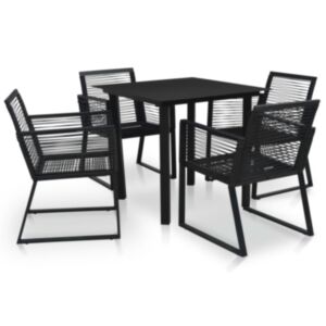 POOD24 Комплект садовой мебели из 5 предметов, черный, полированный ротанг и стекло